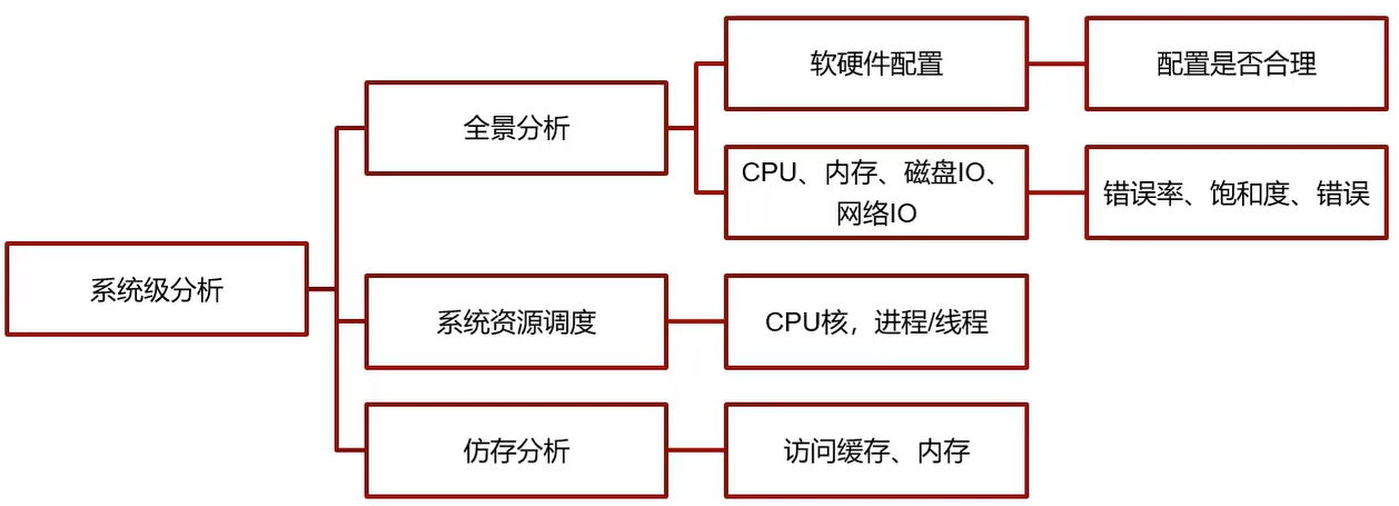 - 系统级性能分析定义为针对整个系统进行性能分析,包括发生在所有的硬件组件、整个软件栈和数据路径上的事件,这些事件都有可能影响性能。系统级性能分析包含以下功能: