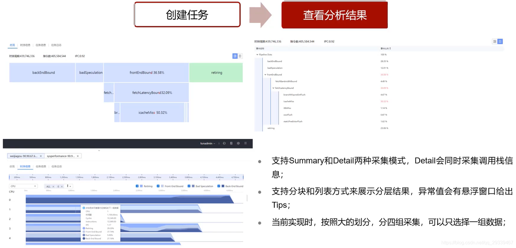- 系统级分析,包括:全景分析、系统资源调度分析和访存分析