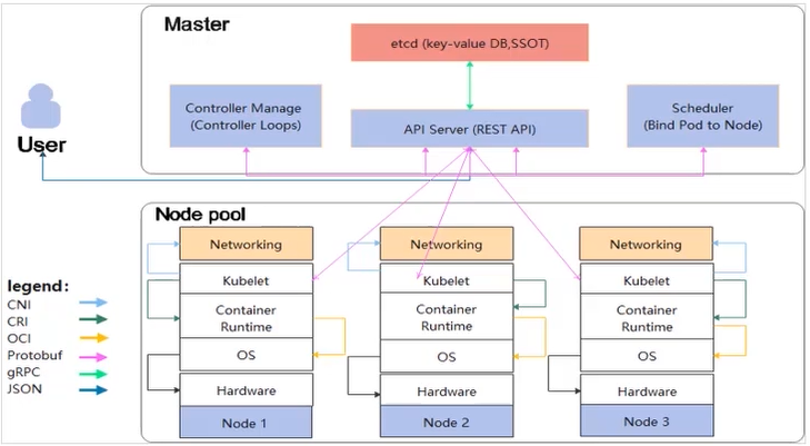 - etcd:后端数据库,k/v方式存储,所有的Kubernetes集群数据都存放在此处,保存了整个集群的状态
