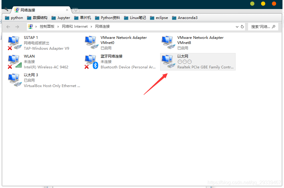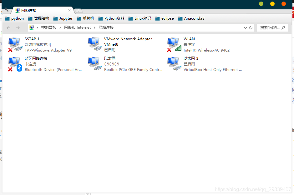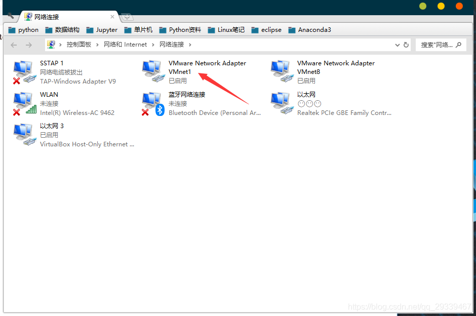 当你在本机打开适配器选项的时候可能会发现只有VMnet8,没有VMnet1,又或者二者都没有,就跟我的一样,如下图