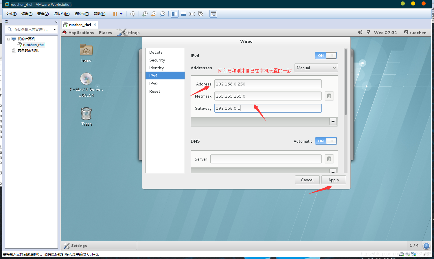 虚拟机的网络地址必须要与真实机的网络地址相同【在同一网段内】