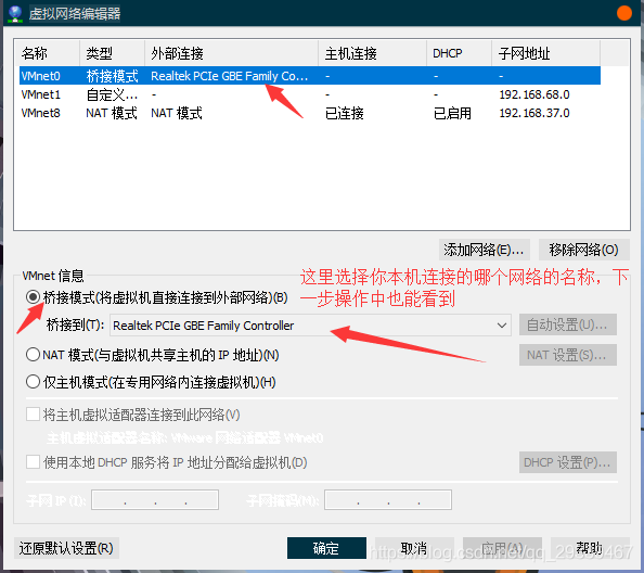 还有一点,桥接模式这里最好自己选择对应的网络名称,我之前选择的自动不太好使。。