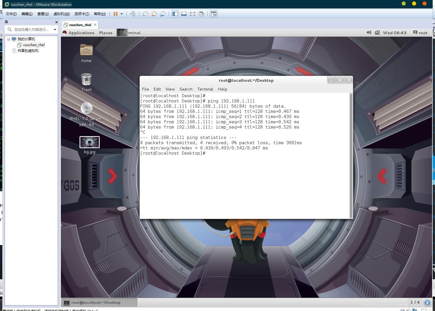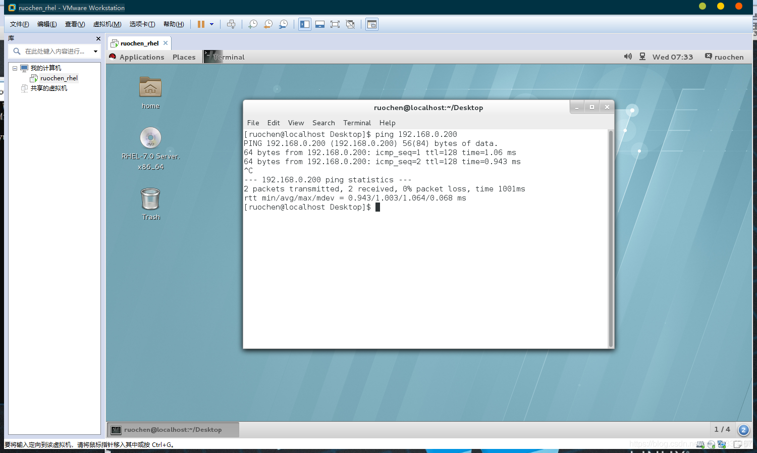 这里有可能会显示 ping 不通,可能是图形界面的问题,图形界面反应太慢了,重新配置一下应该就没问题了