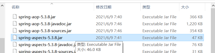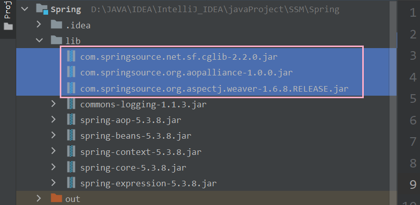 此外,需要引入核心aspects.jar包,如下图所示 : (在Spring安装目录的libs目录下可以找到)