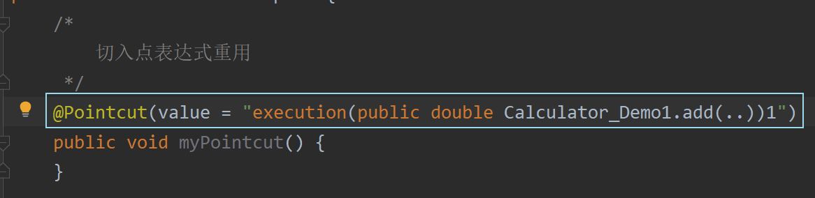 我们在之前定义的切面类CalculatorAspect类中定义了多个切入点表达式,但是我们发现这样一个问题——多个切入点表达式都指向了相同的类的相同方法,未免有些冗余的感觉,能不能想办法将这些切入点表达式进行复用,以提高使用效率呢?