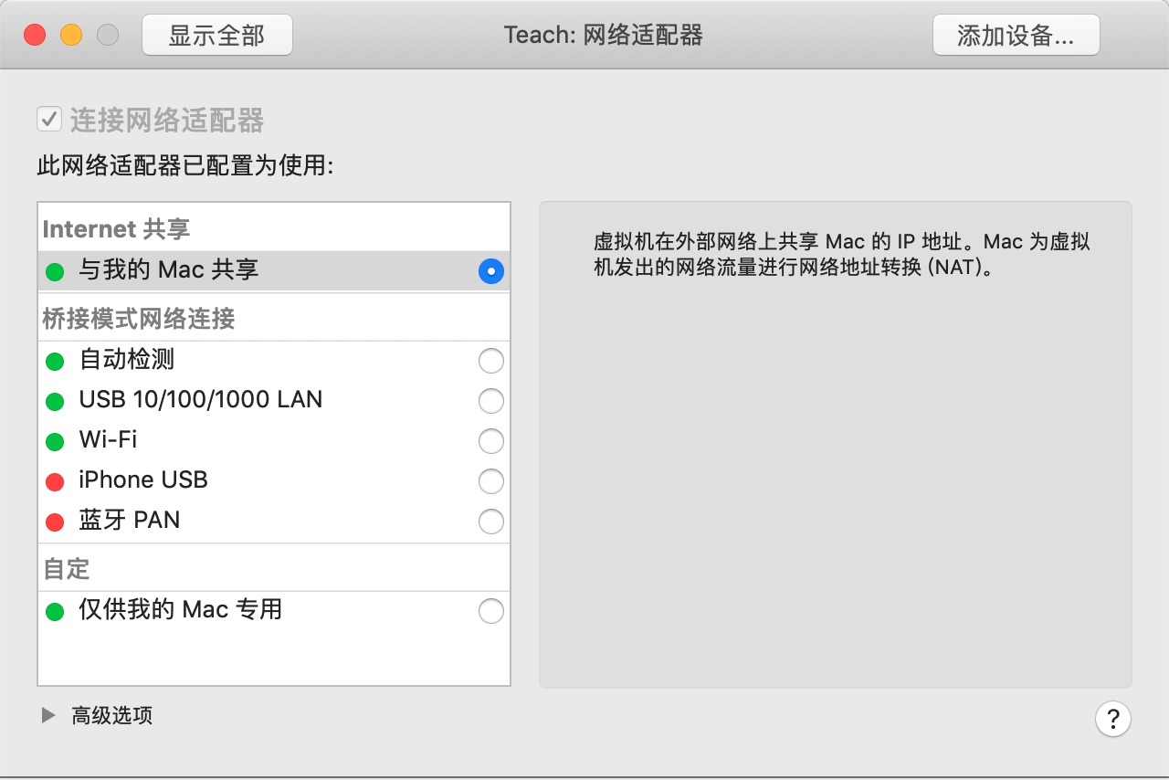 对于虚拟机来说,同样是一个可以独立操作的系统,接入网络同样需要满足以上两个条件。但是由于虚拟机实际上是通过软件方式实现的,所以在硬件方面都是使用物理机的资源,网卡也是一样。