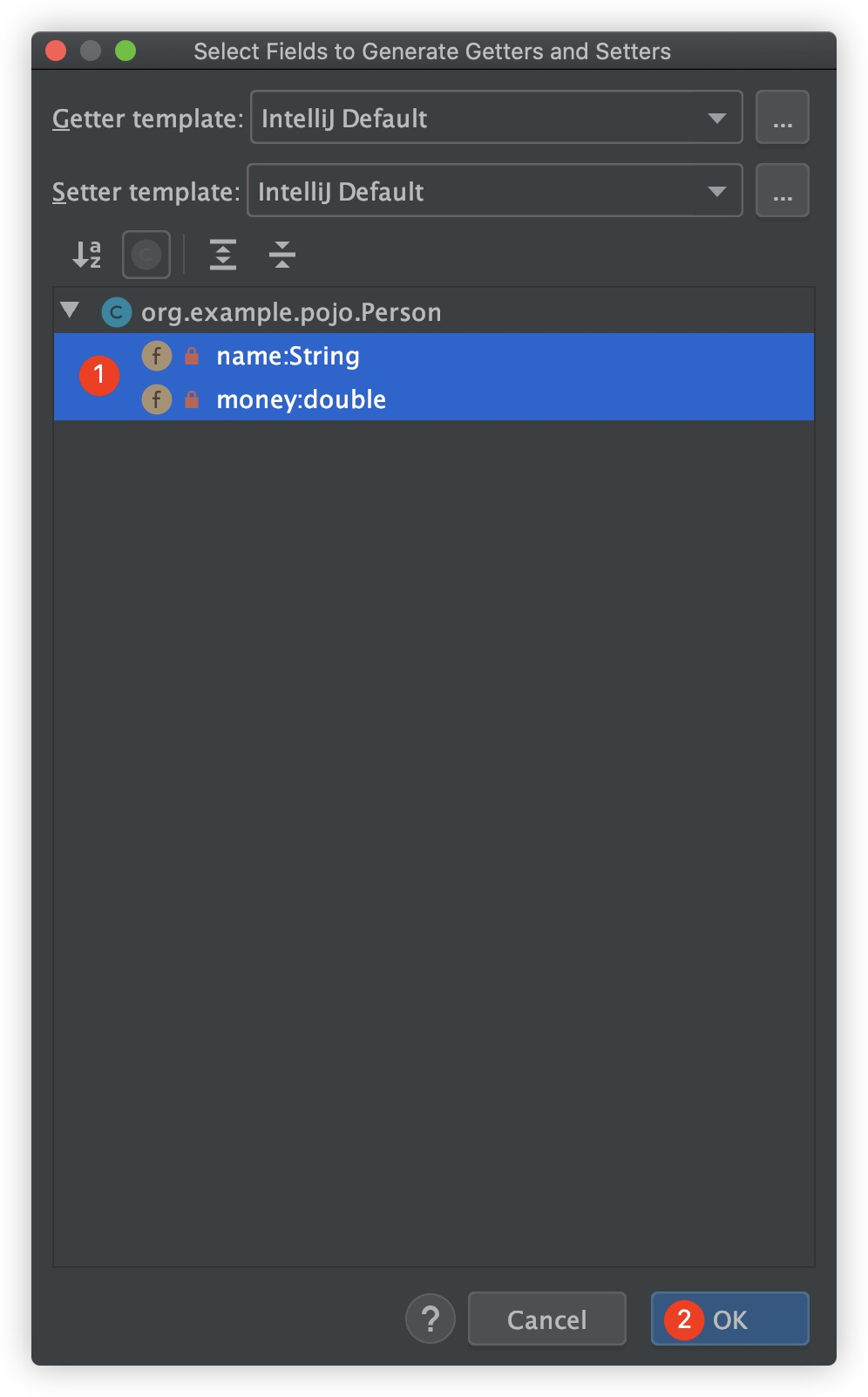 属性定义完成后,选择source菜单 -> Generate Getters and Setters…