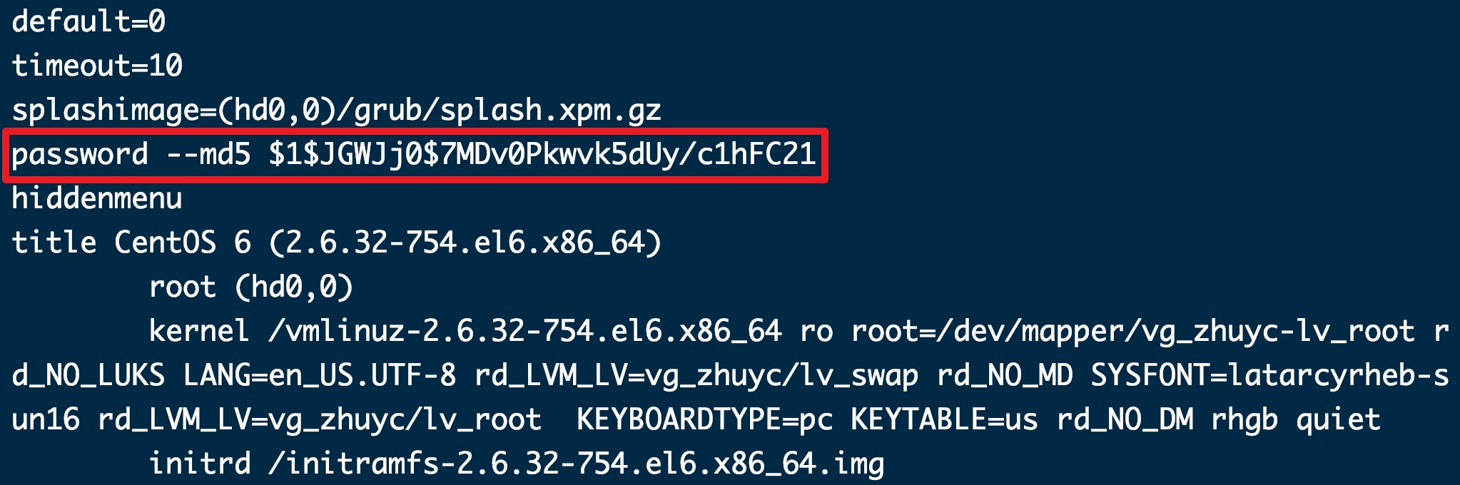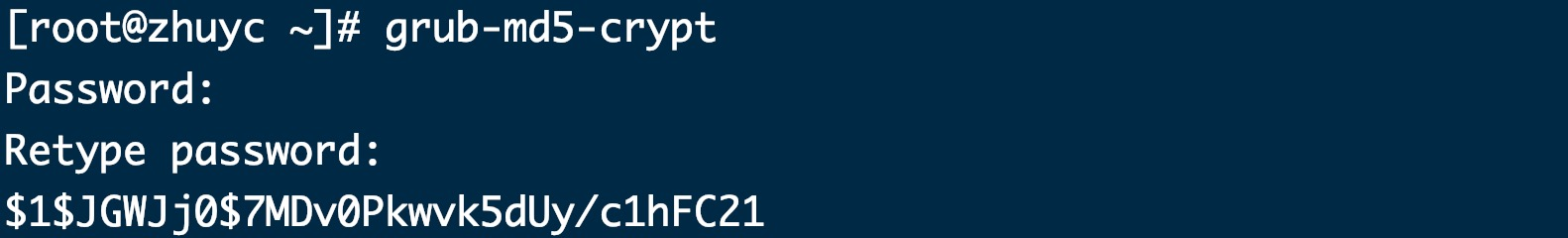 以使用MD5的操作方式为例,使用grub-md5-crypt命令先获得加密后的字符串。