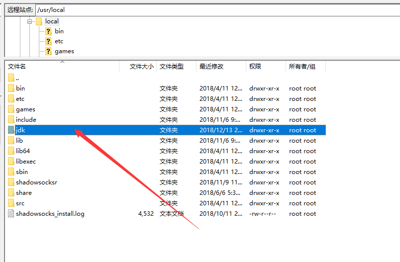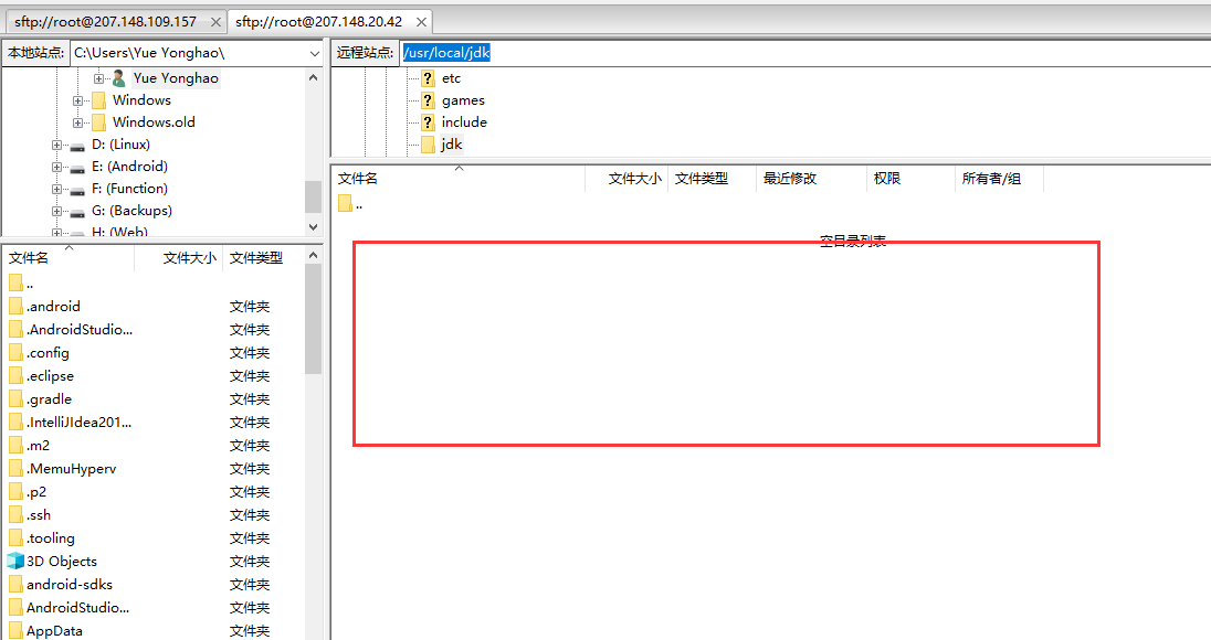 进入新建jdk目录,下载完的.gz文件上传到服务器(拖进去就行)