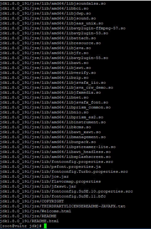 然后输入 tar -zxvf jdk-8u191-linux-x64.tar.gz 将此进行解压(可能下载的.gz压缩文件名不一样,自己换)