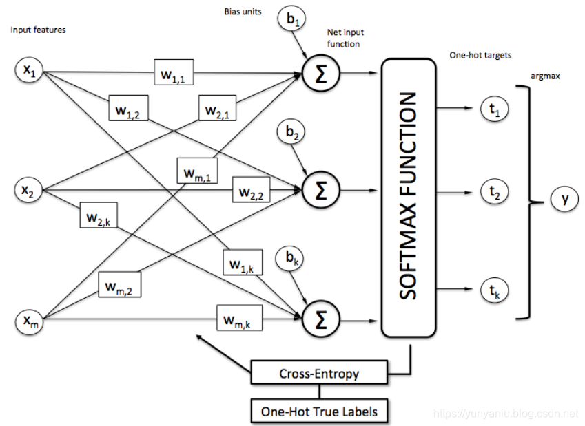 交叉熵可用于比较softmax输出和独热编码(one-hot encoding)输出之间的距离。