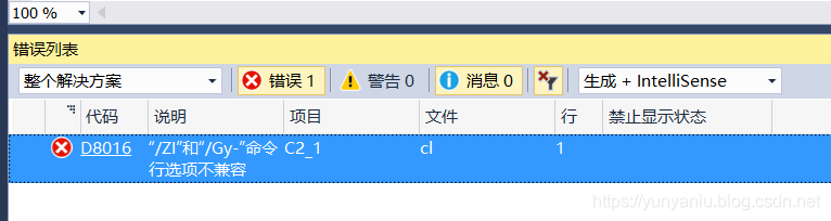 成功解决D8016“/ZI”和“/Gy-”命令行选项不兼容