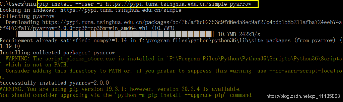 pip install --user -i https://pypi.tuna.tsinghua.edu.cn/simple pyarrow