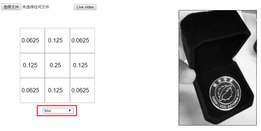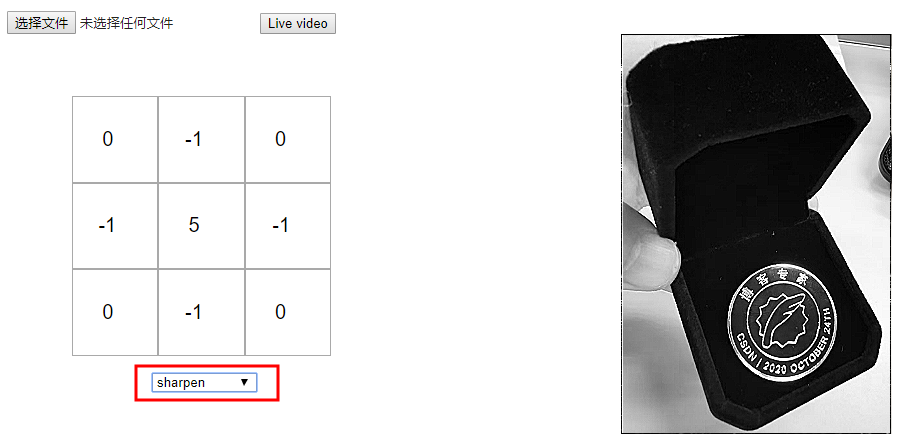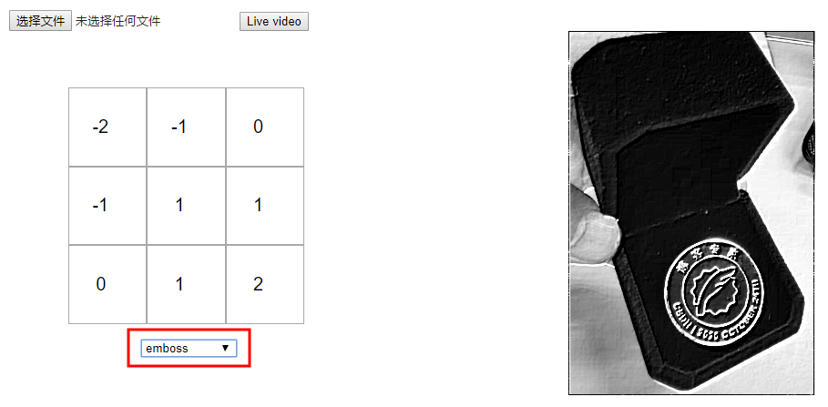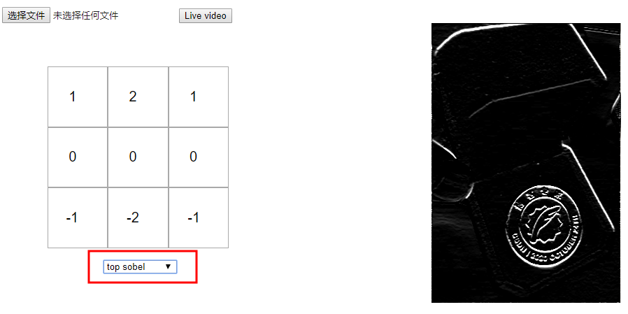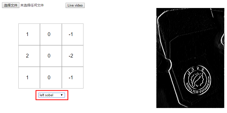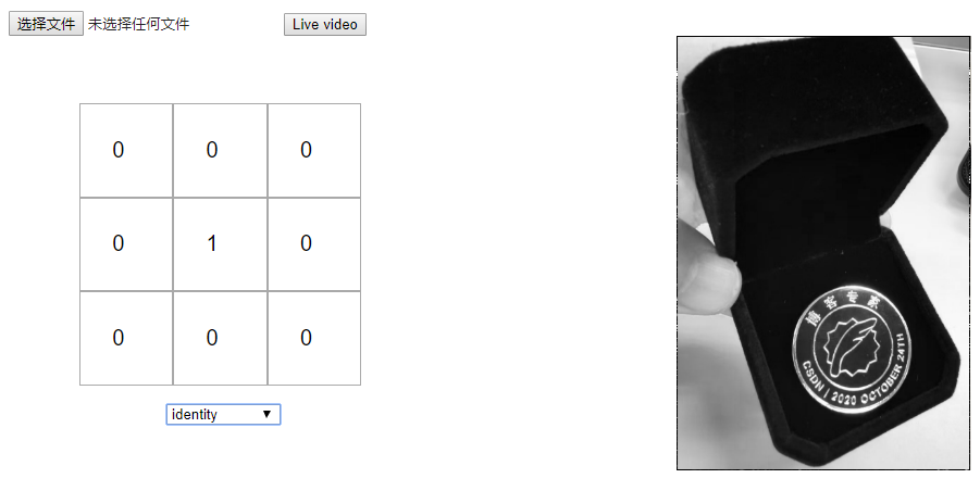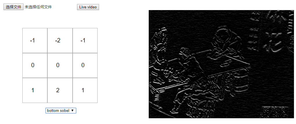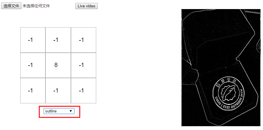 自己测试,你可以选择不同的核矩阵,看看他们如何影响原始图像或建立你自己的核。如果你的浏览器支持的话,你也可以上传你自己的图片或者使用实时视频。