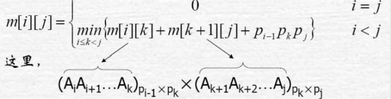 -> A[i:j]的计算量:A[i:k]的计算量加上A[k+1:j]的计算量,再加上A[i:k]和A[k+1:j]相乘的计算量