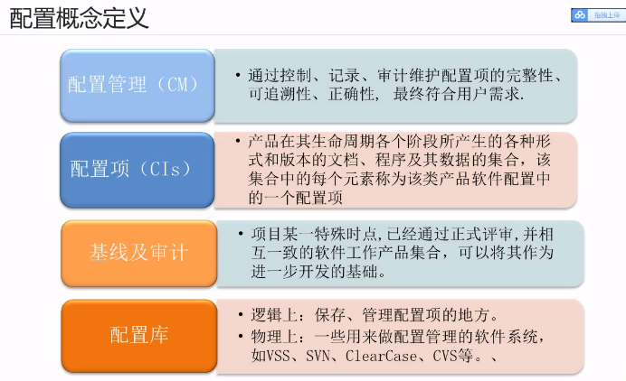 简介:配置管理(Configuration Management,CM)是通过技术或行政手段对软件产品及其开发过程和生命周期进行控制、规范的一系列措施。配置管理的目标是记录软件产品的演化过程,确保软件开发者在软件生命周期中各个阶段都能得到精确的产品配置。