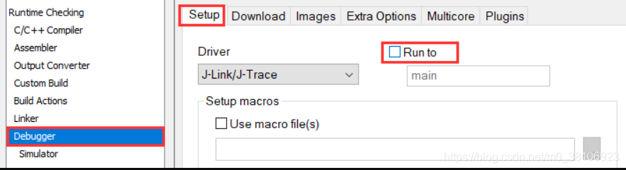 在EWARM的工程Options > Debugger > Setup中将“Run to”勾选取消,这样在进入调试之后就会停第一条要执行的代码的位置: