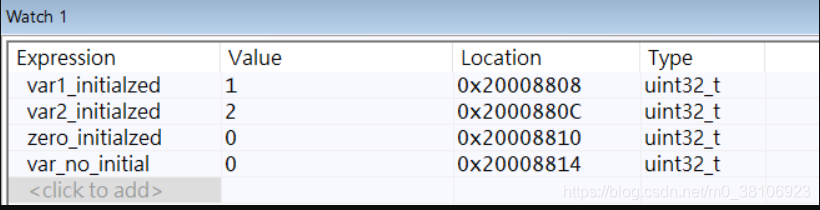 在全局变量未初始化之前,通过watch窗口可以看到,变量的值都是随机数。