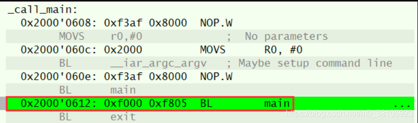 在__cmain函数的最后,跳转到用户的main函数,最终开始用户的代码执行。