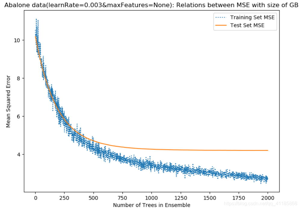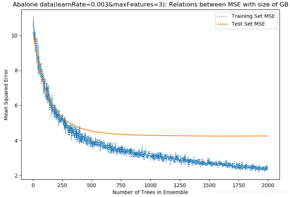 abaloneGBMModel = ensemble.GradientBoostingRegressor(n_estimators=nEst, max_depth=depth,