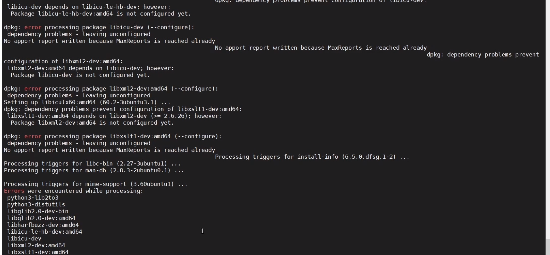 依赖的安装也并非一帆风顺,遇到一些错误中断了安装,需要重新安装一下 python: apt-get install python3.7。当前环境只支持特定版本的Python。