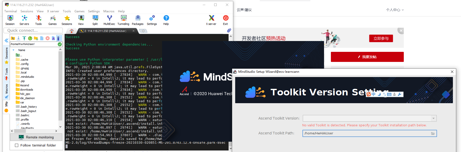 MindStudio 运行依赖特定的环境,因此网页版的 CloudShell 和 本地的 Xshell 都不能成功调起 MindStudio 界面,按照老师的教程,可以使用MobaXterm。 -