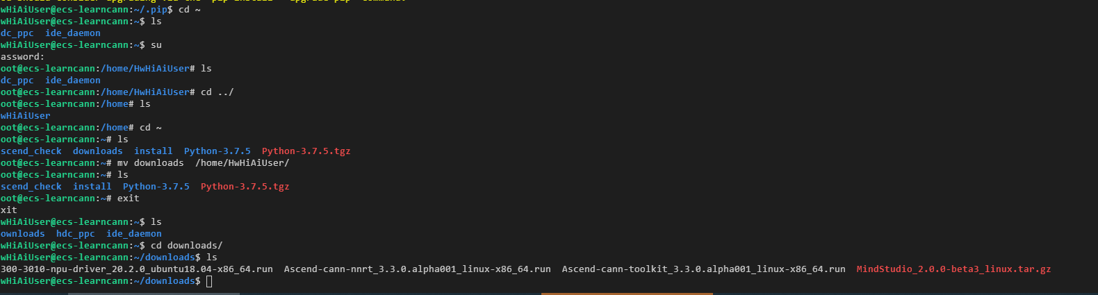 推荐使用默认的 HwHiAIUser 用户,但需留意有些过程需要使用 root 用户,比如驱动的安装。 -