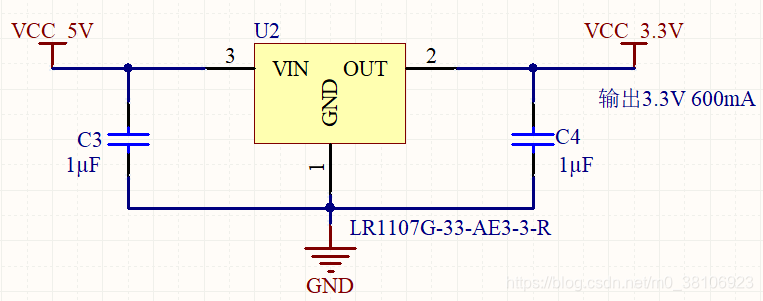 DC 5V转DC 3.3V电源电路设计如下所示: