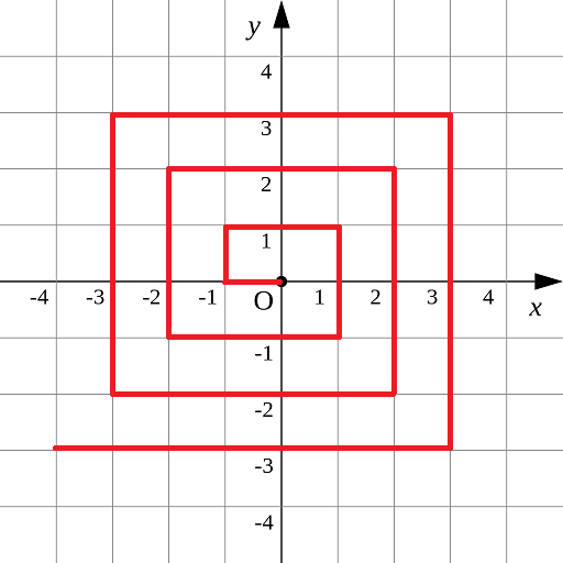 如下图所示的螺旋折线经过平面上所有整点恰好一次。