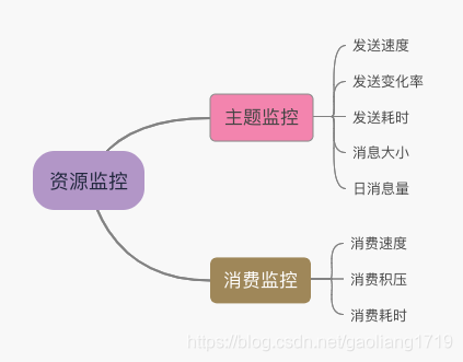 我们先把主题监控和消费监控统称为资源监控,下图分列了主题和消费组包含的监控项。