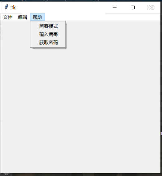 在使用菜单控件的时候,和我们使用其他控件有所不同,我们需要使用创建主窗口的方法config()将菜单添加到窗口中。