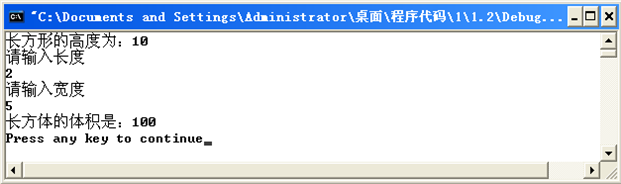 result=calculate(m_Long,m_Width);/*调用函数,计算体积*/