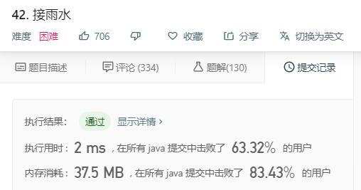 输入: [0,1,0,2,1,0,1,3,2,1,2,1] 输出: 6