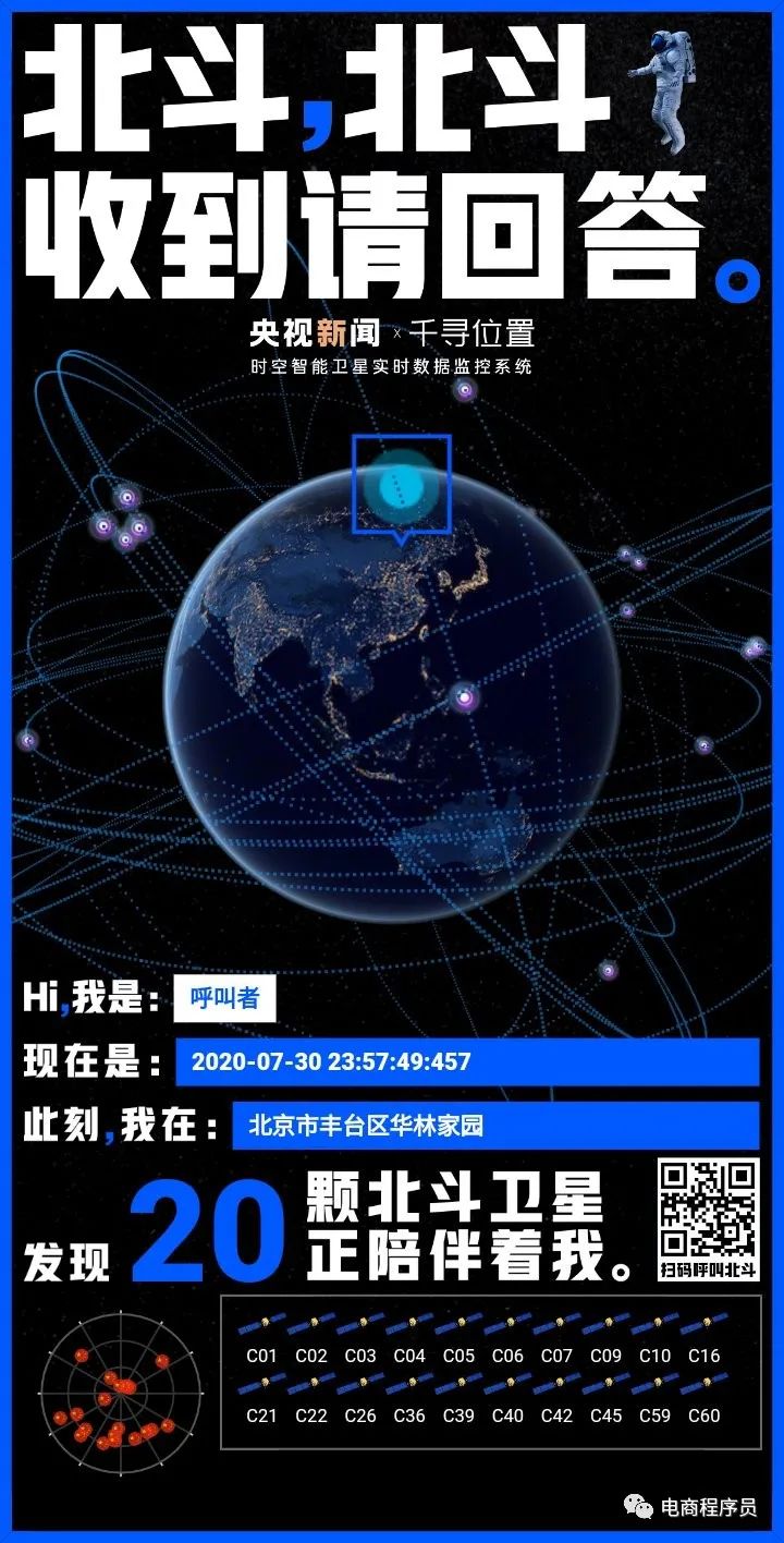 6月23日上午,我国北斗三号最后一颗组网卫星发射成功。与此同时,央视新闻与千寻位置联合发布了“呼叫北斗”H5互动小应用,让每一个用户可以实时获取北斗卫星数据,知道在他所处的位置上,有多少颗北斗卫星可以提供服务“陪伴着他”。这个小应用迅速火遍全网,7天之内,全球已有超过1700万人通过这个小应用来“呼叫北斗”。