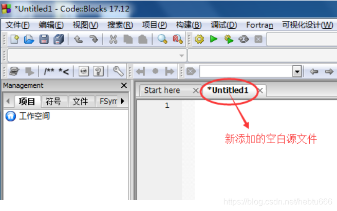 或者直接按下 Ctrl + Shift + N 组合键,都会新建一个空白的源文件,如下图所示: