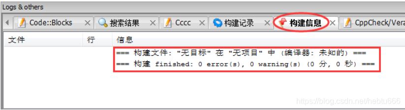 如果代码没有错误,CodeBlocks 会在下方的 “构建信息” 窗口中看到编译成功的提示,如下图所示: