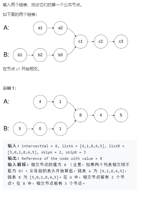 如果两个链表没有交点,返回 null.