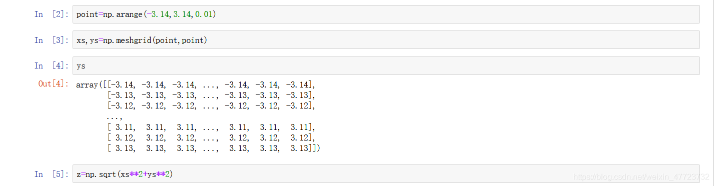 我们生成从-3.14--3.14,按照0.01的间隔生成,最后计算表达式X^2+Y^2的值