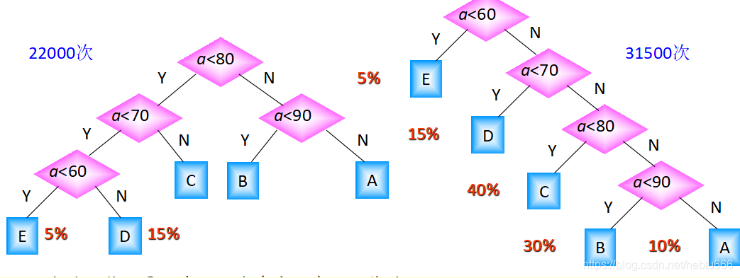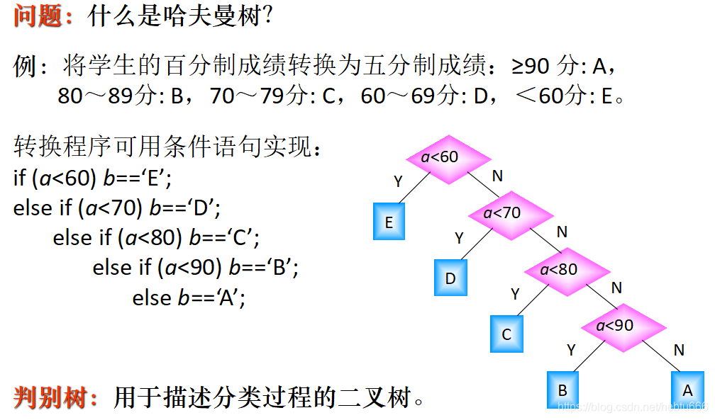 霍夫曼树又称最优二叉树,是一种带权路径长度最短的二叉树。所谓树的带权路径长度,就是树中所有的叶结点的权值乘上其到根结点的路径长度(若根结点为0层,叶结点到根结点的路径长度为叶结点的层数)。树的路径长度是从树根到每一结点的路径长度之和,记为WPL=(W1*L1+W2*L2+W3*L3+...+Wn*Ln),N个权值Wi(i=1,2,...n)构成一棵有N个叶结点的二叉树,相应的叶结点的路径长度为Li(i=1,2,...n)。可以证明霍夫曼树的WPL是最小的。
