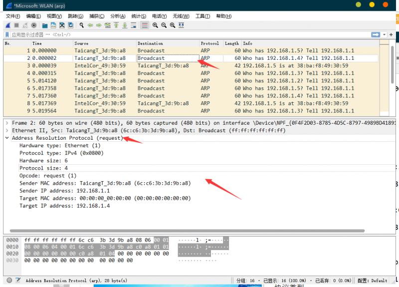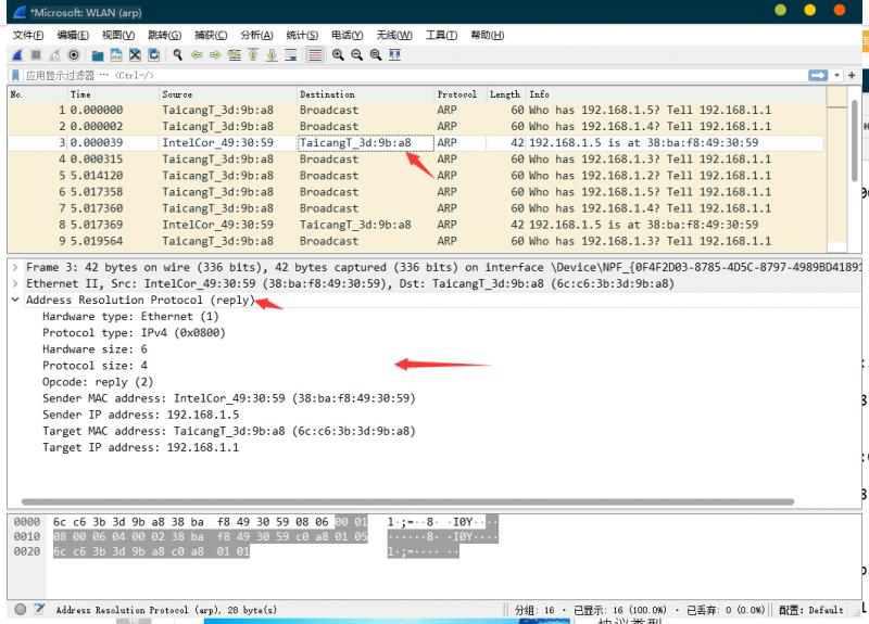| Sender MAC address: TaicangT_3d:9b:a8 (6c:c6:3b:3d:9b:a8) | 发送方 MAC |
