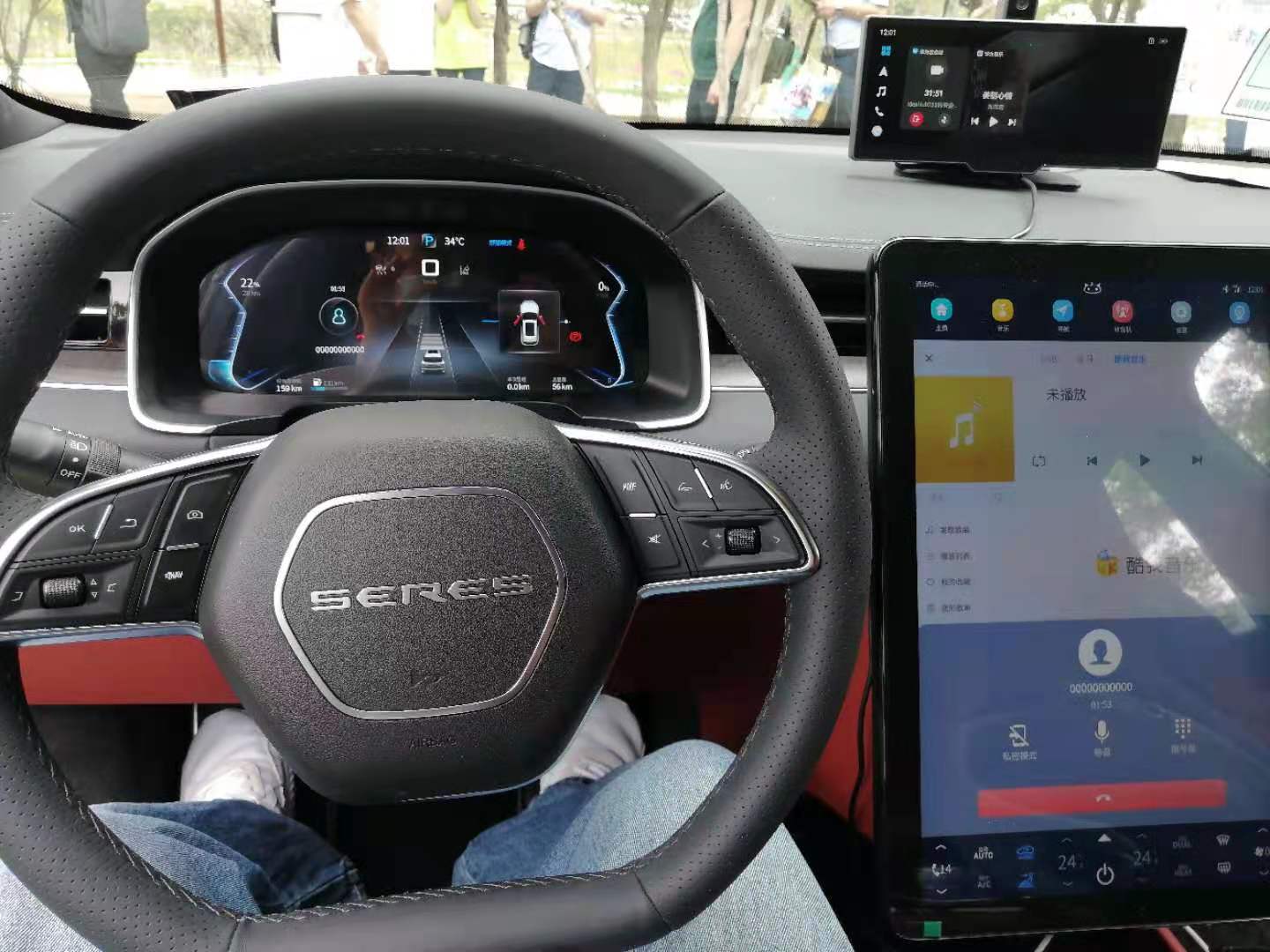 在展岛我们也看到了华为前段时间刚刚发布的赛力斯汽车(不是自动驾驶那个),近距离体验了一把: