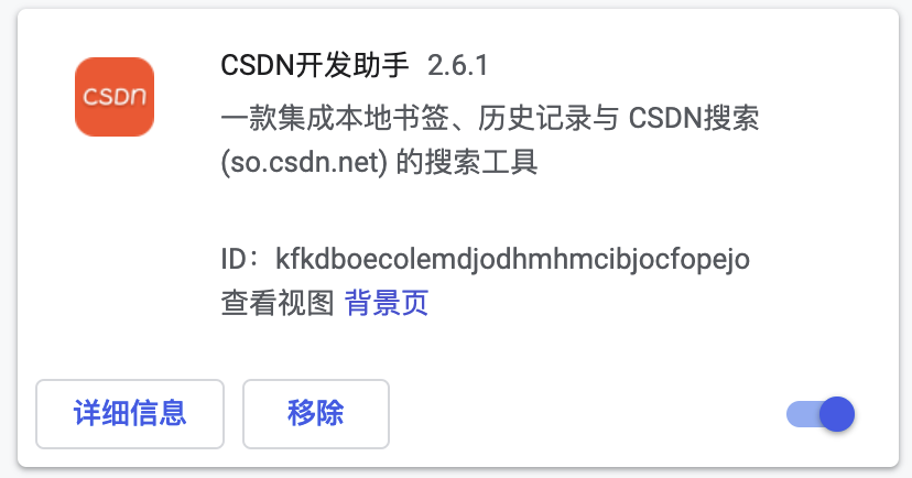 三、打开右上角开发者模式,再把 csdn_chrome_plugin_v2.6.1.crx 拖拽到浏览器中完成安装。