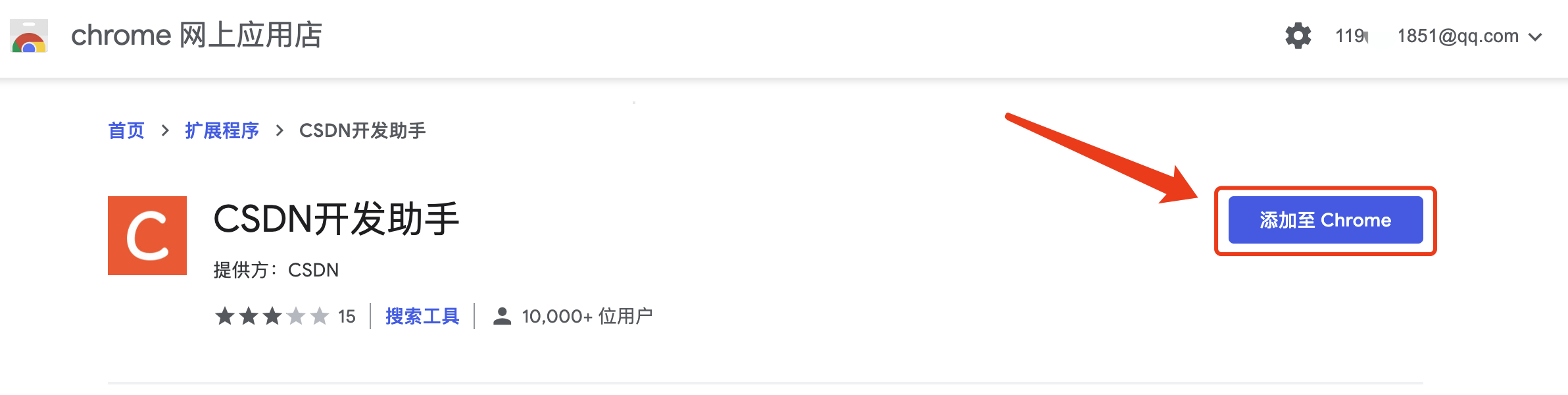当然正常情况,打开后是这样的,毕竟CSDN还有很多国外用户以及一些科学上网的用户。点击“添加至Chrome”按钮,即可完成插件安装,就这?是的,是不是非常方便?