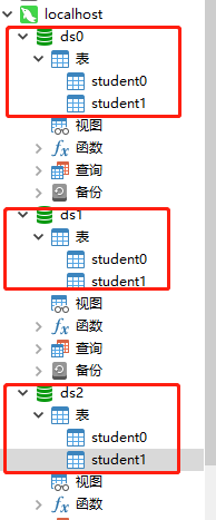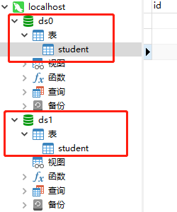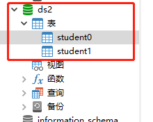 ds0 , ds1 ,ds2 三个数据库中 分别创建 student0 和 student1 表