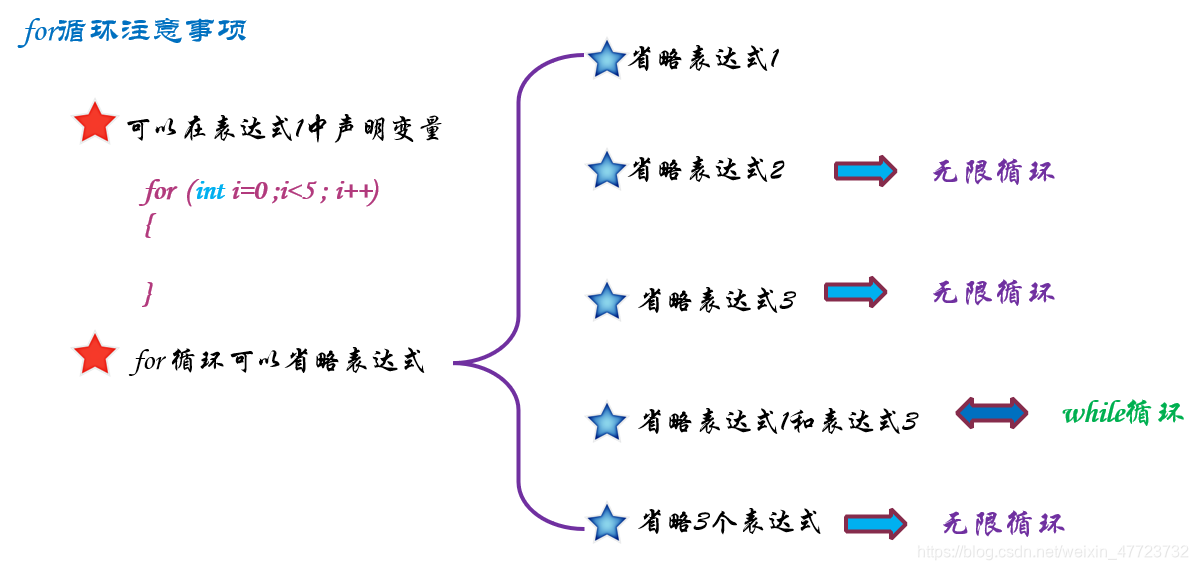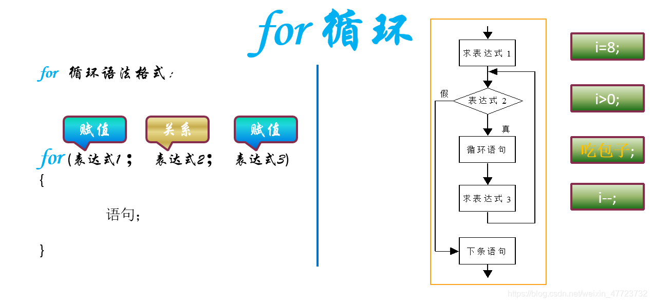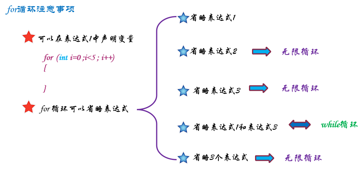 þwhile和do-while循环只在while后面指定循环条件,在循环体中应包含使循环趋于结束的语句(如i++或者i=i+1等);for循环可以在表达式3中包含使循环趋于结束的操作,可以设置将循环体中的操作全部放在表达式3中。因此for语句的功能更强,凡用while循环能完成的,用for循环都能实现。