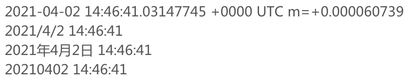 为了便于大家观看和理解,我们是可以对时间进行格式化的,比如上面的代码中简单列举了三种常见的时间显示格式。我们可以通过下面的结果加深理解。