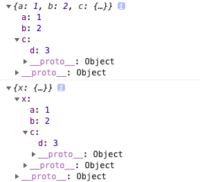 let x = { a: 1, b: 2 , c: { d: 3}};