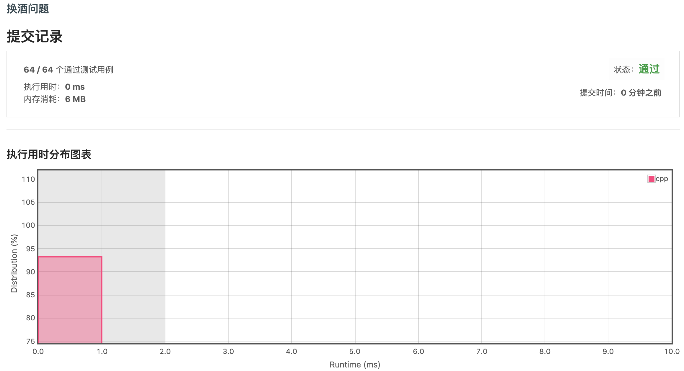 分析:首先我们有numBottles瓶酒,那么一定会得到numBottles个空瓶,其中每numExchange个空瓶兑换一瓶新酒,这样每次兑换其实是消耗了(numExchange-1)个酒瓶,因此可以转化为求公式(numBottles−n*(numExchange−1)≥numExchange)打破平衡的n值,那么 n= (numBottles - numExchange) / (numExchange - 1) + 1。注意:不存在赊账的情况,即 numBottles >= numExchange 才能兑换,不能在剩两个空瓶的时候,先借一个空瓶兑换一瓶喝完后再还。