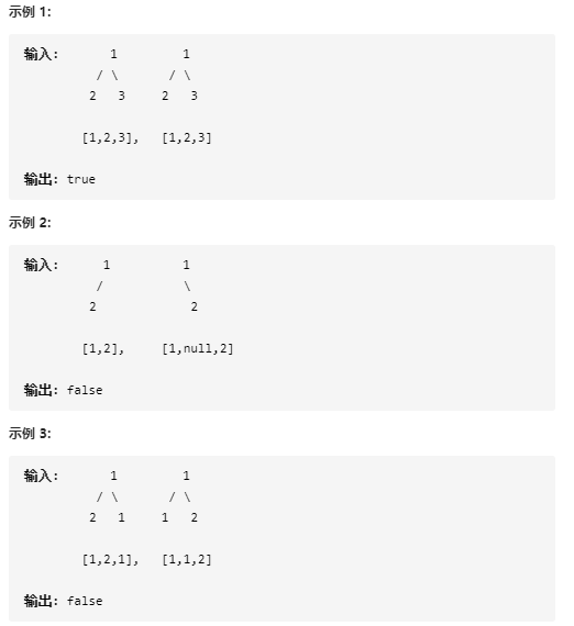 (原题链接:https://leetcode-cn.com/problems/same-tree/)
