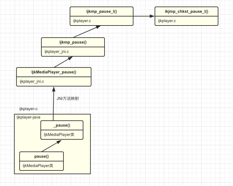 pause()是ijkplayer暂停播放内容的接口方法,其调用顺序如下图所示: